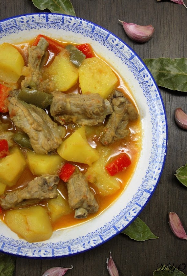 De pequeña, cuando se hacía este guiso de costillas en casa, siempre repetía ración de patatas. Eso sí, debían ir acompañadas de una cantidad generosa de salsa, con el tenedor las pisaba hasta que quedaban como un puré y me sabían a gloria. La verdad es que lo sigo haciendo salvo que tengamos invitados, pero no se lo contéis a nadie, ¿vale?