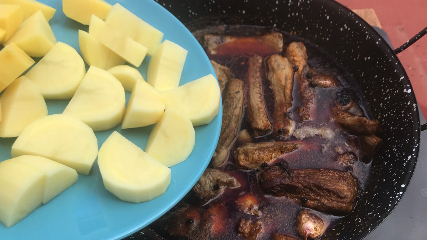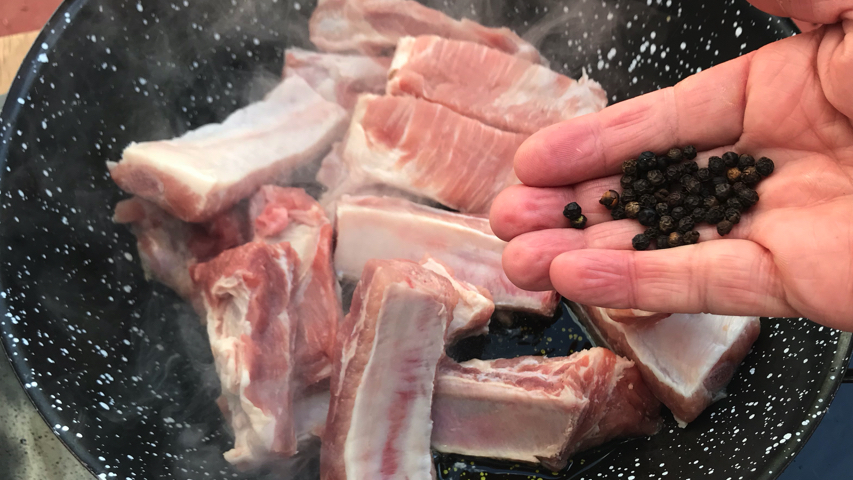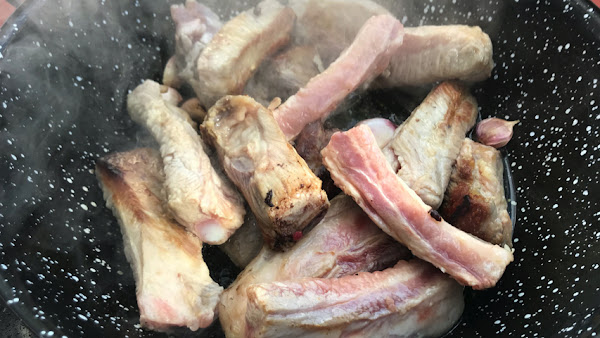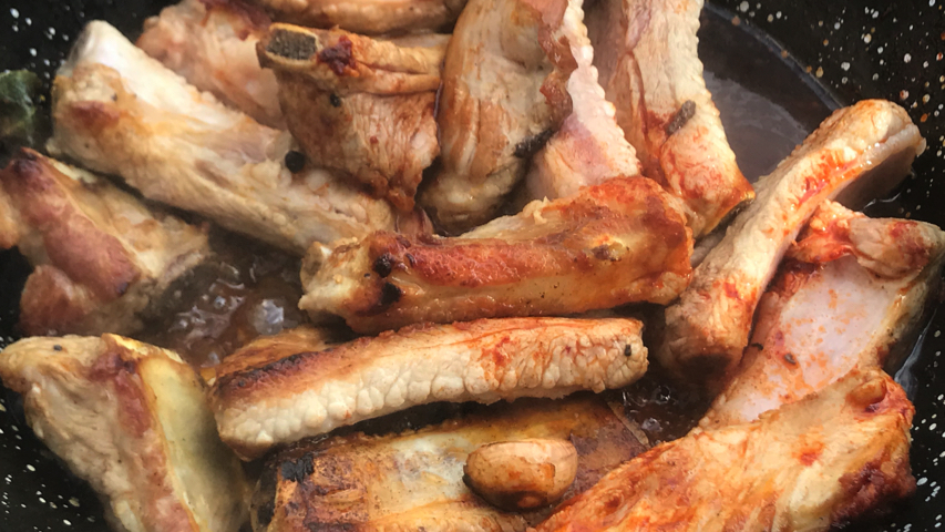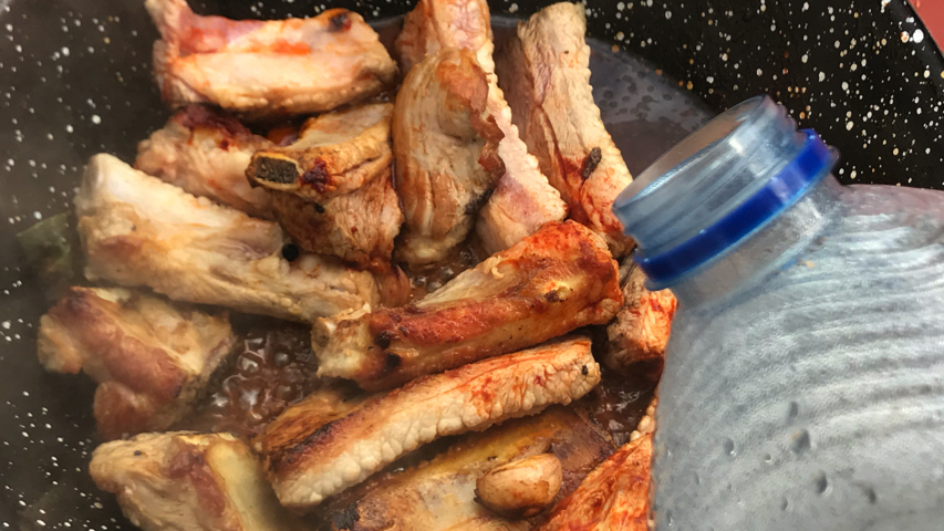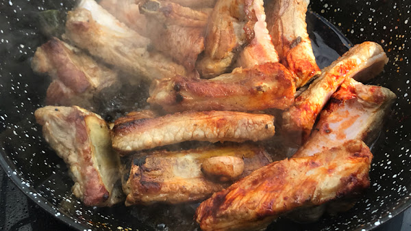 En una cazuela a fuego medio-alto sofríe las costillas.