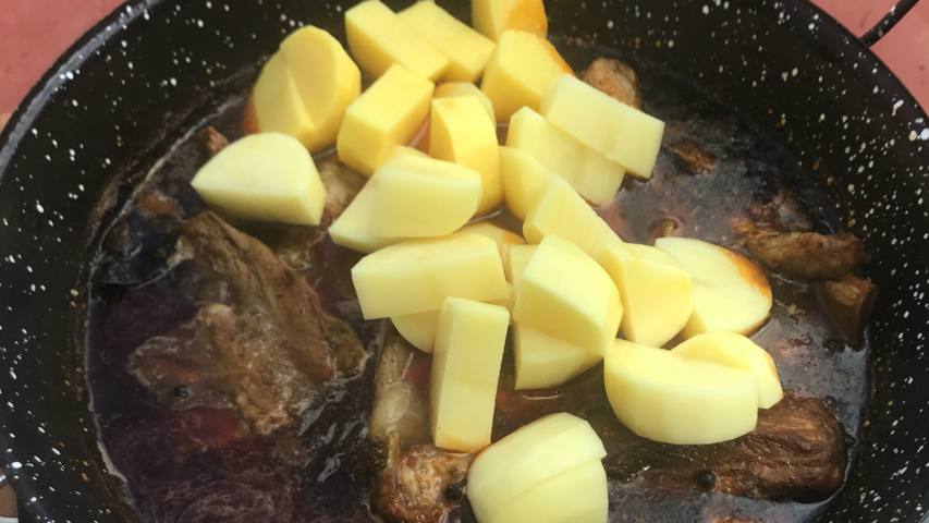 Añade las patatas y deja cocer hasta que estén tiernas.