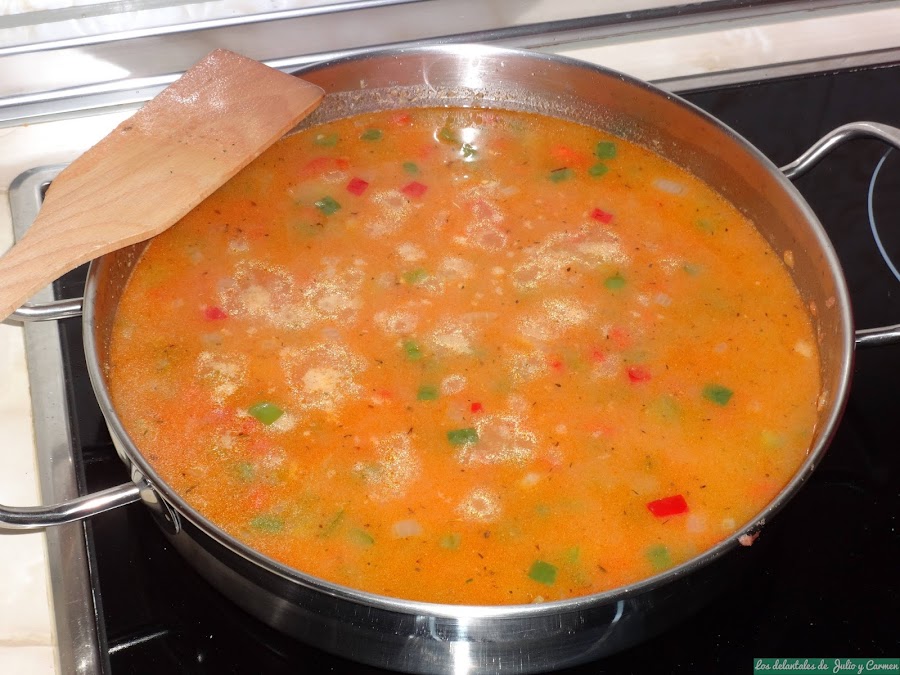 Si hiciera falta, podemos verter un poco de agua caliente si vemos que nos quedamos sin caldo en la olla.