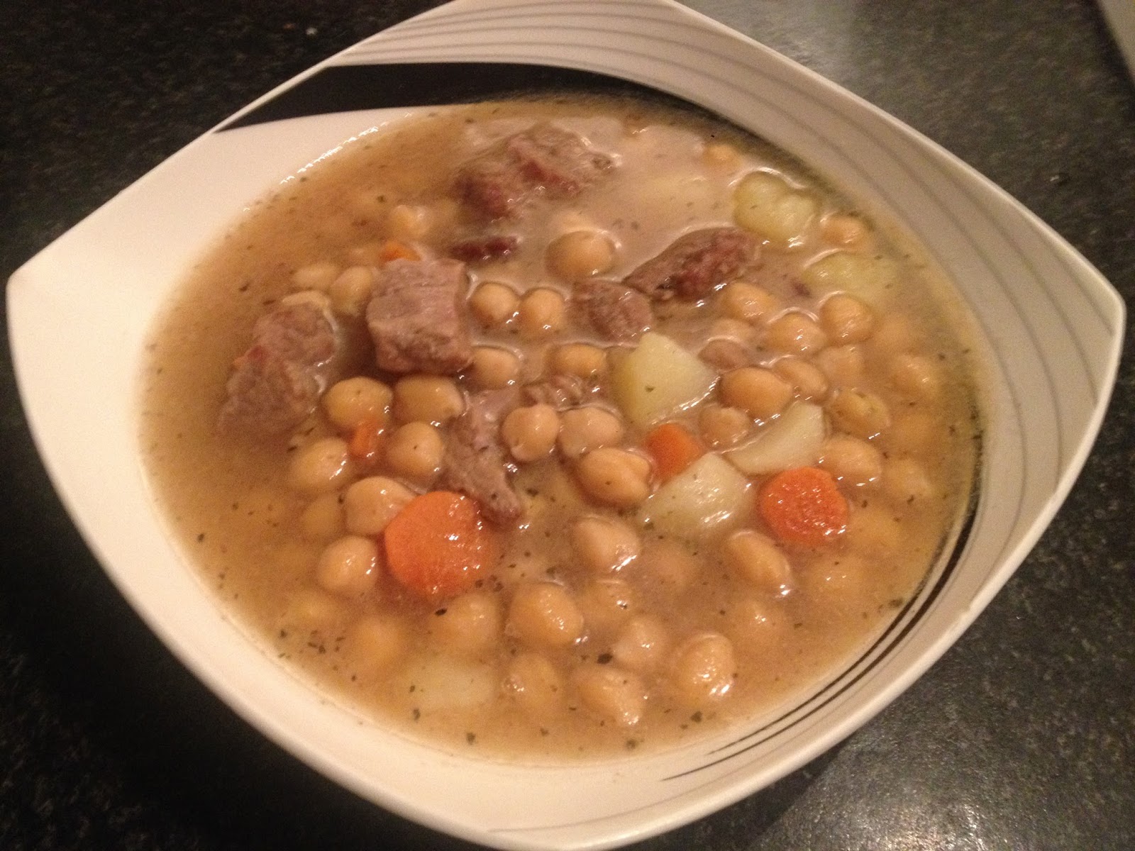 6º - Probamos para ver si es necesario rectificar de sal y servimos en la mesa para degustar un guisito caliente que en estas frías épocas no vienen mal .
