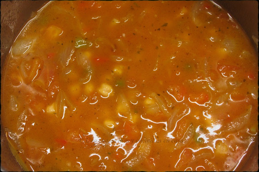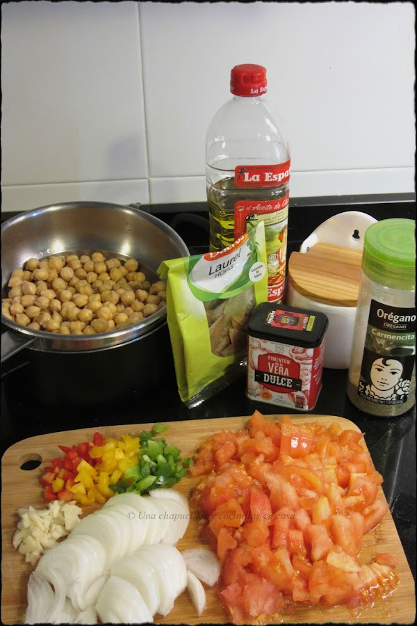 Quedan unos garbanzos buenísimos, con un buen tomate natural, la cebollita y los pimientos, es un plato de cuchara que a mi me encanta, yo ademas le añado especias como oregano, una hojita de laurel, pimienta y pimentón de la vera. Como siempre digo, las especias al gusto de cada un@, si os gusta mas el comino que el oregano o quizás ambos pues eso, poner lo que mas os guste ;-)