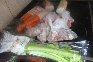 Comenzamos a preparar platos calientes en casa, en esta ocasión unos garbancitos con verduras, huesos y carne.