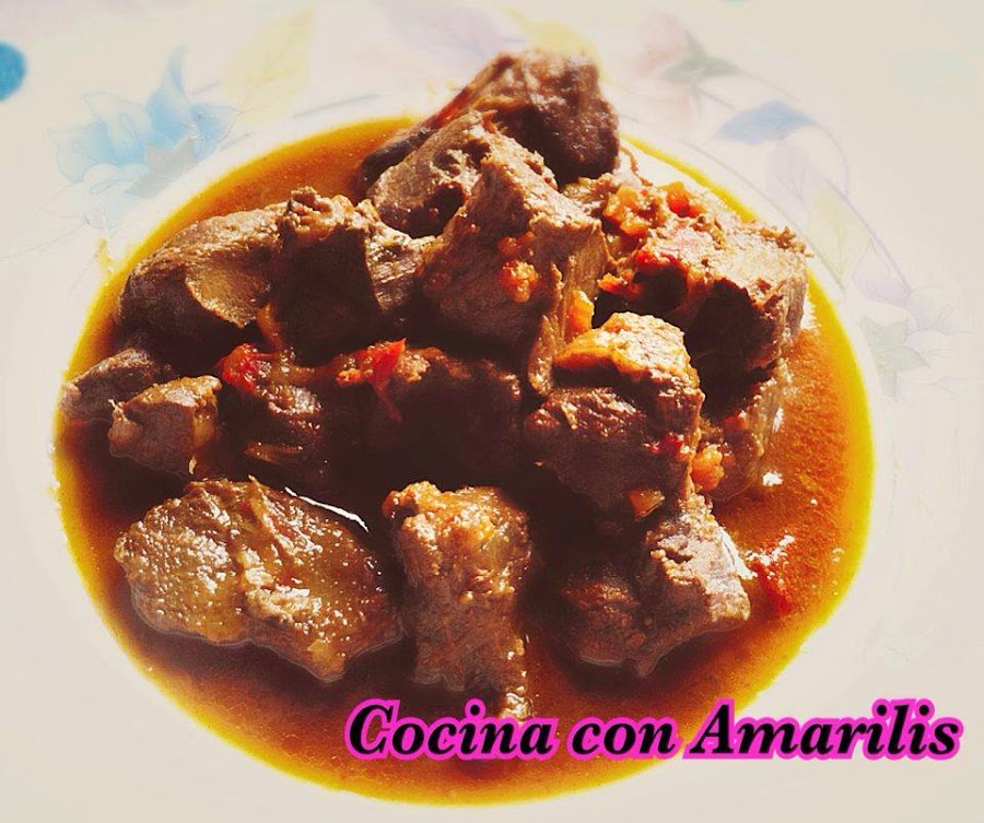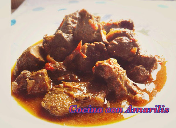 * Agregar el vino de la maceración, dejar reducir hasta la mitad más o menos y añadir agua templada y dejar cociendo hasta que la carne esté tierna.