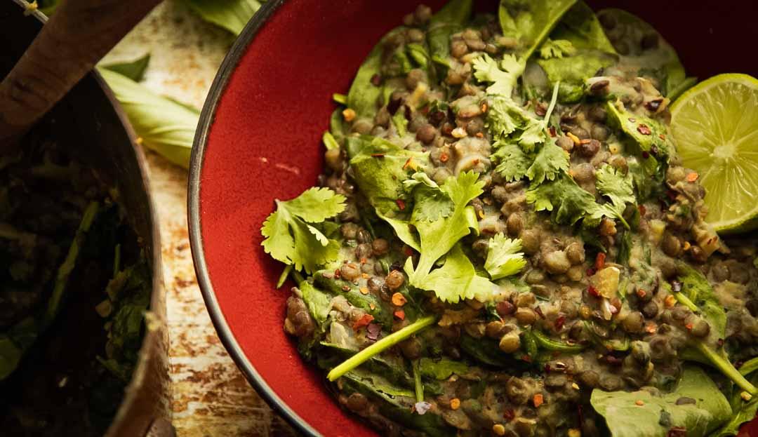 Receta de lentejas con espinacas y leche de coco