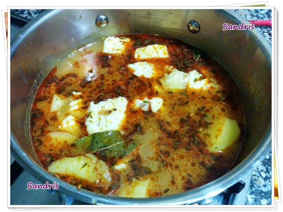 El otro día hice un caldo de pescado, o fumé, cada uno como tenga costumbre de llamarle. Ya otro día os pongo la receta de cómo lo hice. Y aprovechando que tenía caldo de pescado, pues dije... voy a hacer un guiso de pescado, en este caso fue merluza, y a ver qué tal sale. Así que... junté unos pocos ingredientes et voilá!!!! Un rico guiso de pescadito!!!