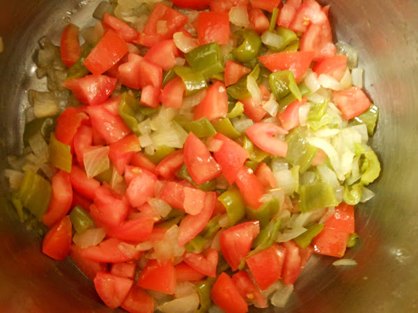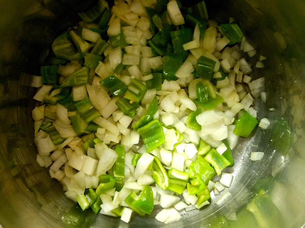 Cuando el aceite de oliva esté caliente introduce la cebolla y el pimiento picado junto a una poquita de sal fina y deja que se cocinen por espacio de 12 minutos.