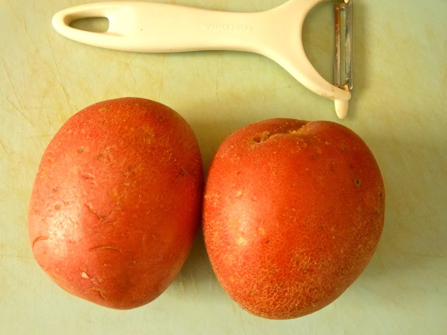 Mientras tanto pela y trocea en trozos grandes las patatas; reserva.
