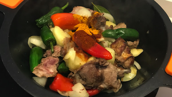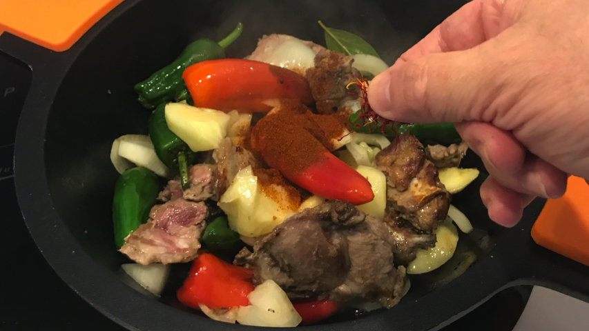 Añade el pimentón, el azafrán y la cúrcuma. Mezcla.