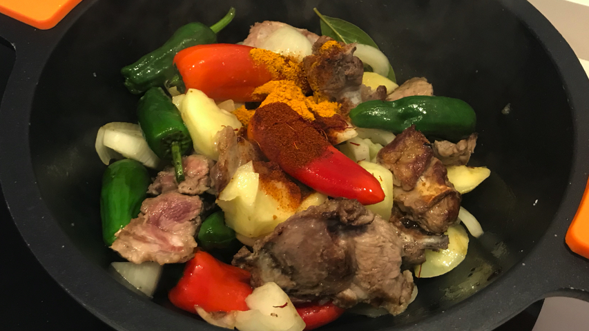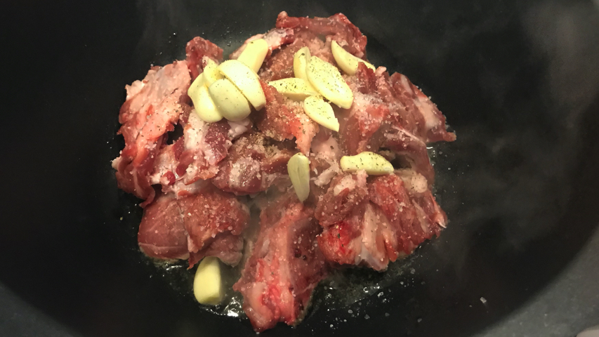 Introduce los trazos de carne. Salpimienta a tu gusto.