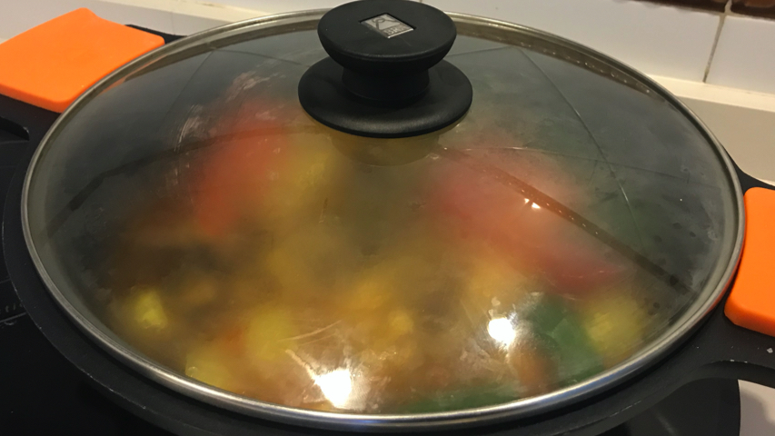 Tapa la olla, baja el fuego (3/10) y deja cocer durante 90 minutos.