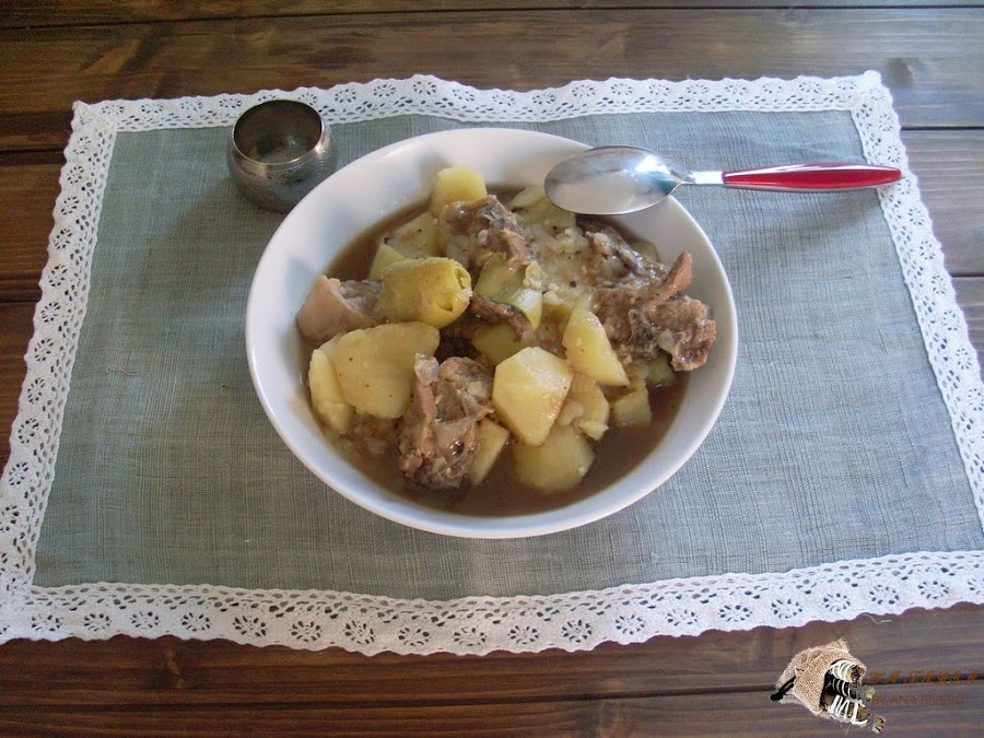 Añadir las patatas, las alcachofas y la carne de la ñora