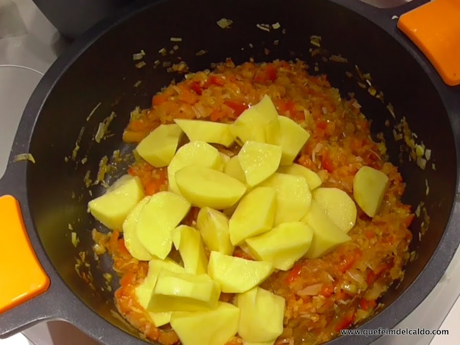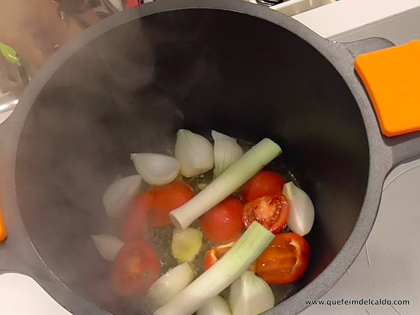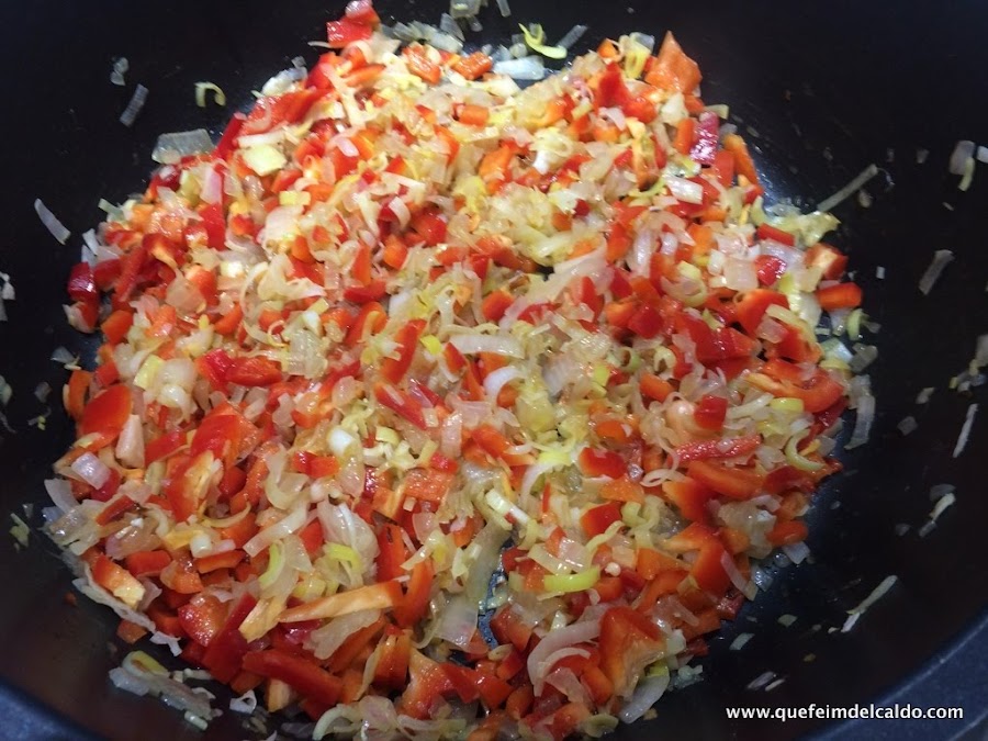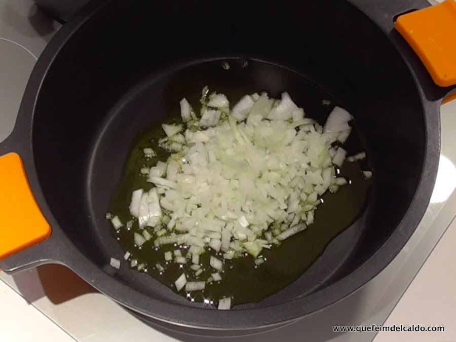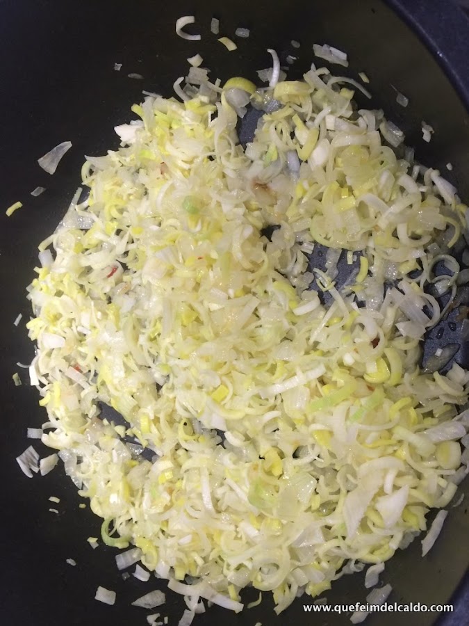 Aqui podemos ver como se pone la cebolla y el puerro transparente.