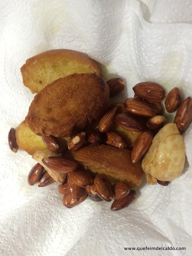 Mientras tanto preparamos la picada, freímos las rebanadas de pan.