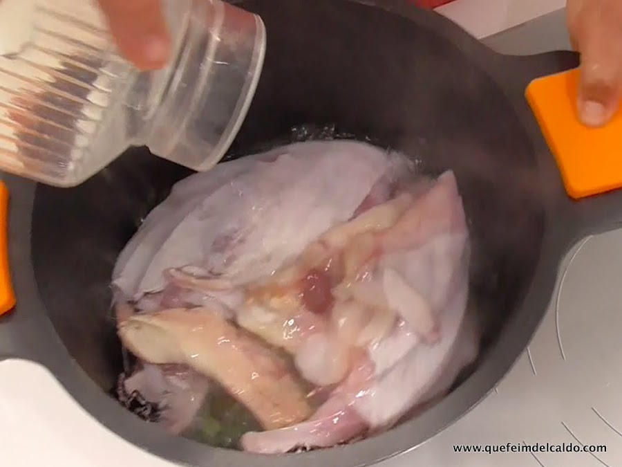 Cuando empieza a hervir desespumamos y dejamos 20 minutos a fuego medio.