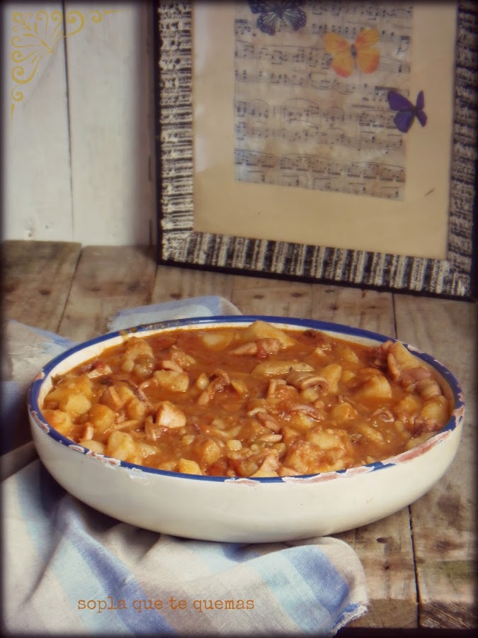 Nos ha encantado y os animo a que lo probéis, queda espectacular. Éste plato me ha recordado a las patatas con langostinos que hice hace tiempo y que es una de las recetas mas vistas del blog.