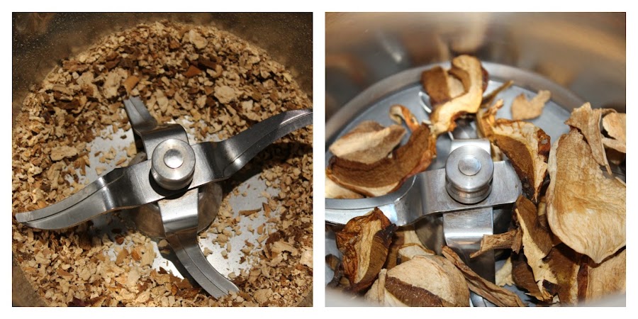 Pica las setas deshidratadas en una picadora o Thermomix.