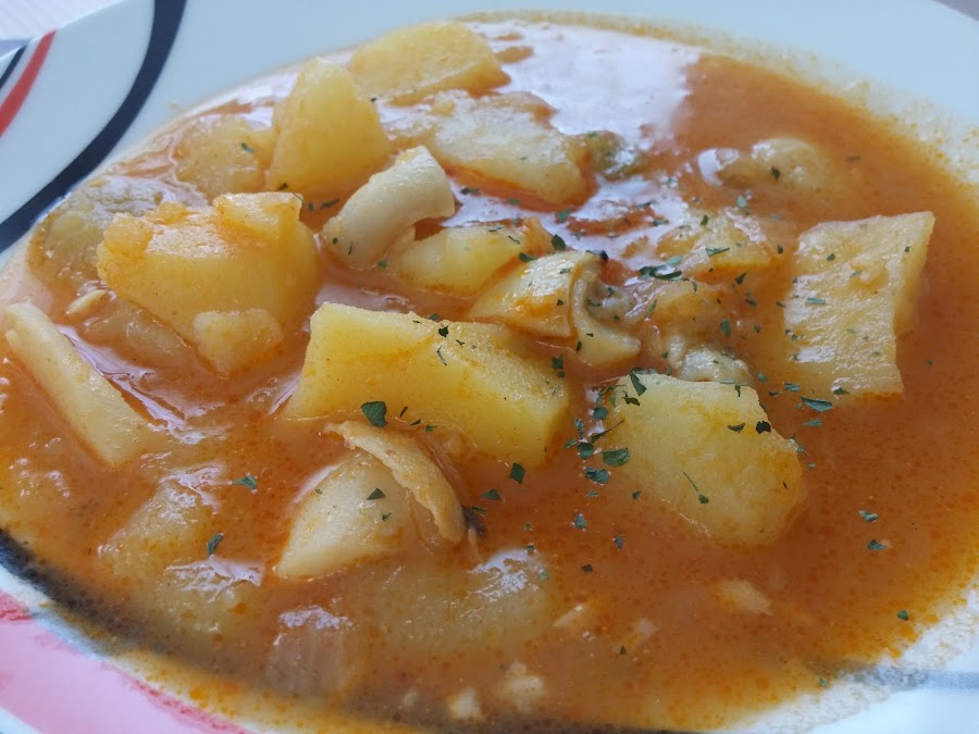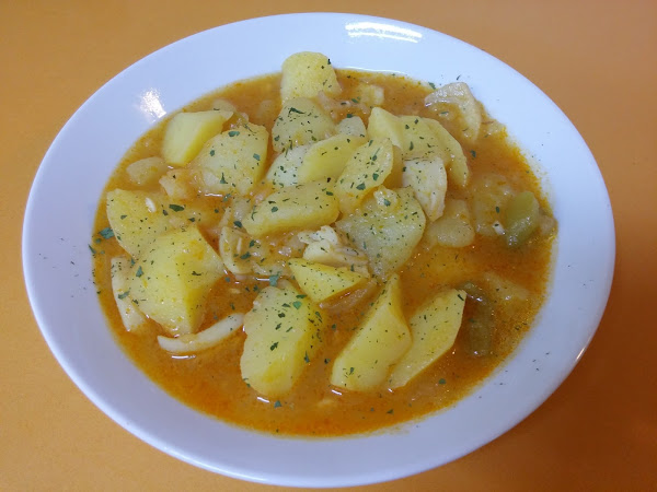Ya sólo nos queda dejarlo cocer a fuego medio hasta que las patatas estén tiernas. Si cuando estén listas veis que el guiso ha quedado demasiado caldoso, podéis añadir un poco de maizena.