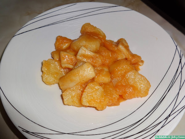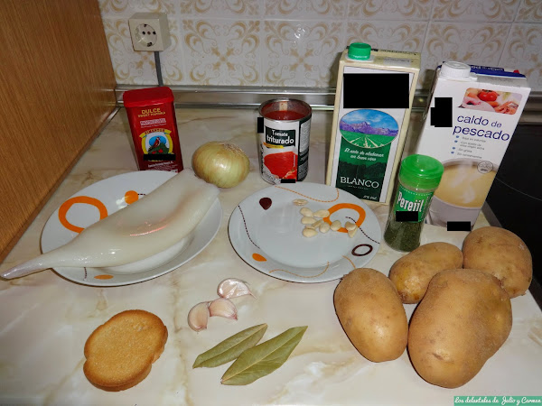 Carmen eligió el ingrediente (bueno, realmente, ella me dijo calamares, pero como lo que teníamos eran tubos de pota, pues lo cambie un poco..jeje) y yo me puse a buscar recetas con el. Esta es una de las formas que tenemos de organizar las comidas de los fin de semana: uno de los dos indica un ingrediente, y con el, buscamos que podemos hacer. Pues una vez indicado, busqué y busqué recetas para ver que podíamos preparar. Y en estas que di con un guiso. No recuerdo exactamente de que era, pero me dio la idea. Solo de pensar en como podía quedar el plato, se me hacia la boca agua... Un guiso con una salsita espesa que invitaría a mojar pan al acabar.. ¿Que mas tenia que pensar? Pues solamente meternos en la cocina a prepararlo.
