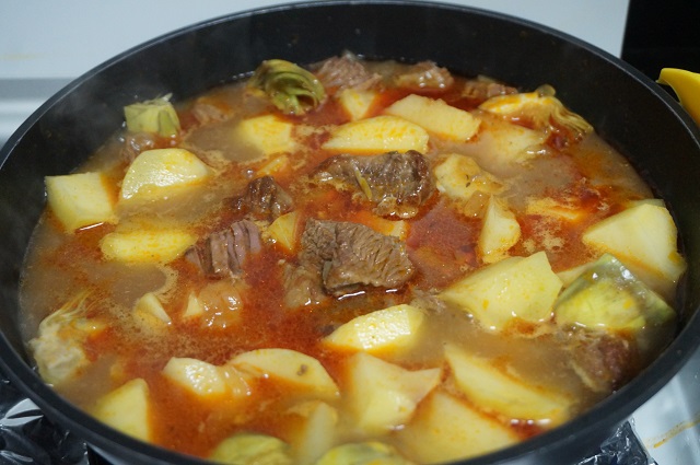 Guiso de ternera con patatas y alcachofas