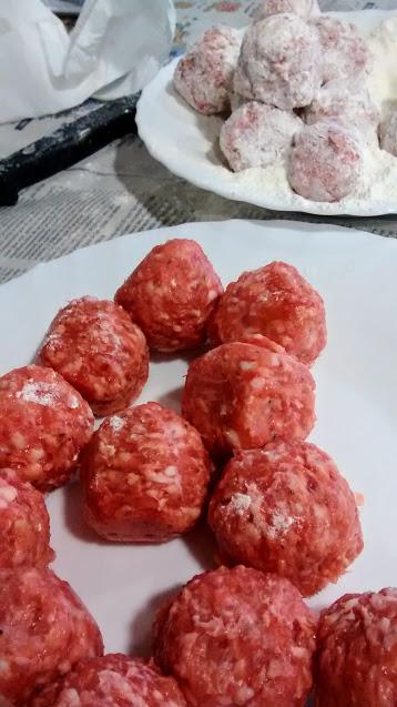 Se enharinan las albóndigas, se fríen en una sartén con aceite muy caliente y se reservan.