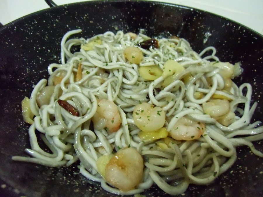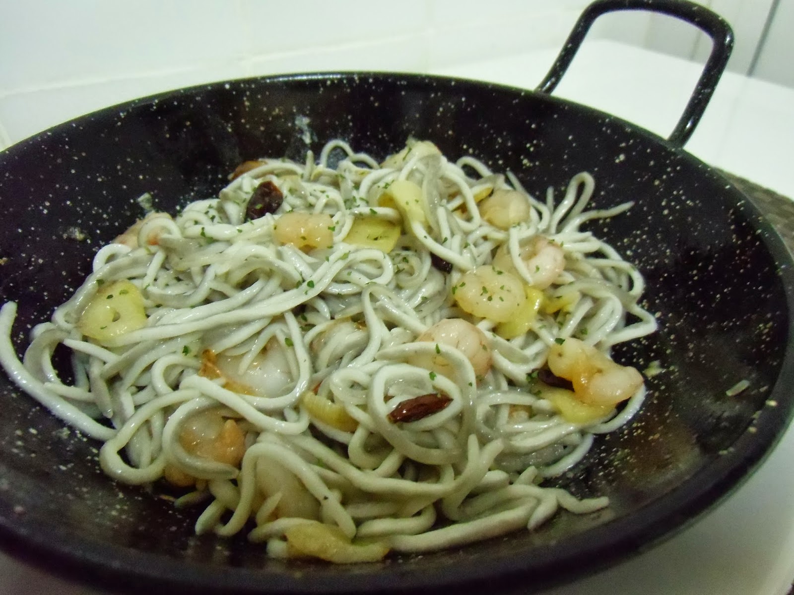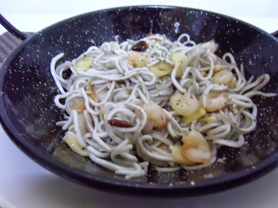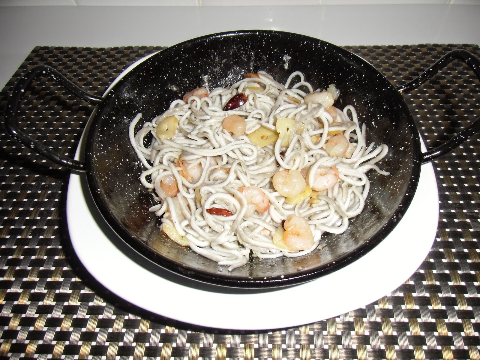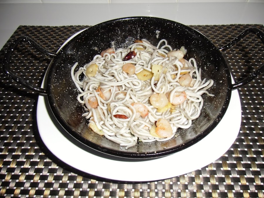 Vamos a preparar las clásicas e insuperables angulas sucedáneas al ajillo con gambas.