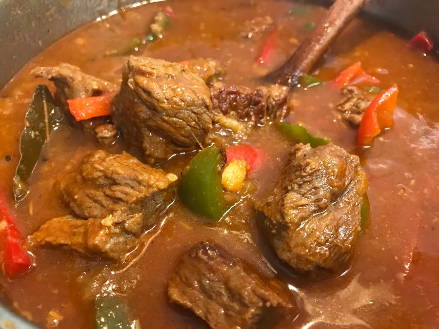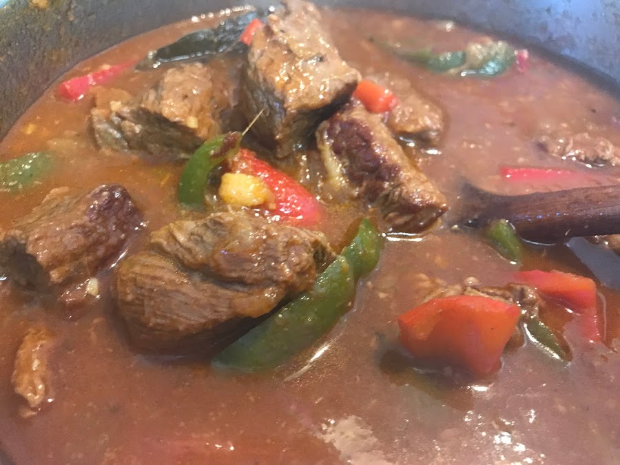 Tres son los ingredientes fundamentales de este guiso tradicional: carne, cebolla y pimientos.A partir de ahí, no hay una sola manera correcta de interpretarlo y se pueden encontrar variantes con o sin caldo de carne, con o sin vino tinto, con o sin tomate, etc..