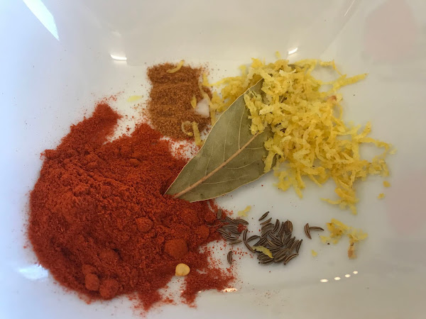 Sal, pimienta, pimentón, alcaravea o comino, cayena y laurel, aportarán aromas y dulzor. Añadiremos también ajo, tomate concentrado y ralladura de limón.Para desglasar, echaremos mano de todo el saber popular y utilizaremos vino tinto en primer lugar y luego caldo de carne, en lugar de sólo agua, consiguiendo un fondo mucho más rico.