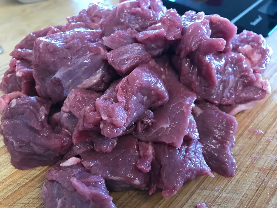 -800 gramos de ternera para gulasch o estofado en dados (cualquiera de las partes mencionadas más arriba).