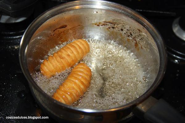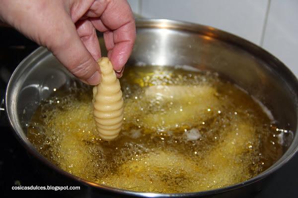 A continuación freímos nuestros gusanillos en aceite de girasol o de oliva suave hasta que estén bien dorados.