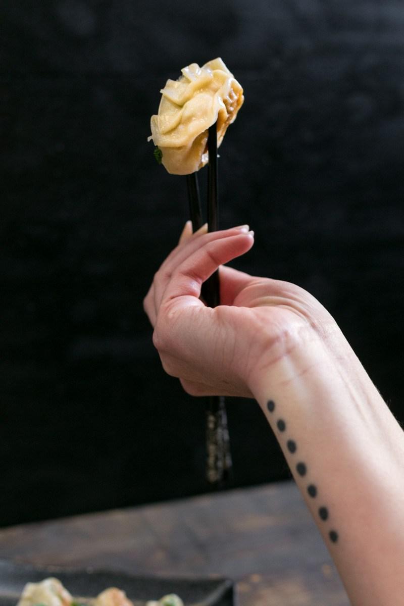 Aprendí a prepararlas en un taller de dumplings y gyosas que tomé hace algunos meses en Barcelona. En este taller aprendimos tres estilos/tipos diferentes y dos técnicas de cocción. Y en esta oportunidad les traigo una receta que tiene un mix de ambos tipos (al más puro estilo El Sabor de lo Bueno) que mezcla ingredientes chinos y japoneses. También les doy dos alternativas de cocción; al sartén o al vapor (usando vaporera), ambos resultados son diferentes pero igualmente deliciosos.