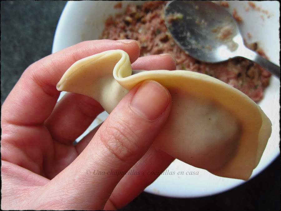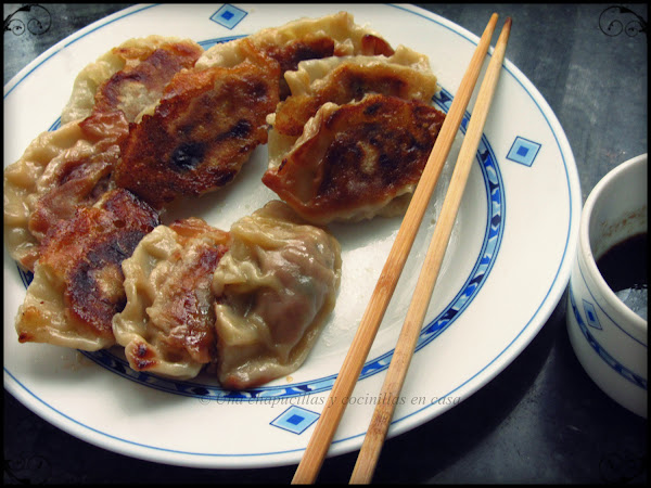 Si no encontráis en los supermercados asiáticos obleas para gyoza, un sustituto sería las de la cocinera, son mejor las otras, pero estas también quedan ricas.