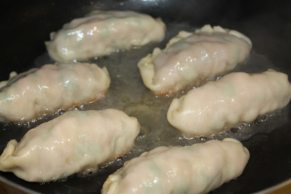 En una paella ponemos un poco de aceite y doramos por una banda las gyozas.