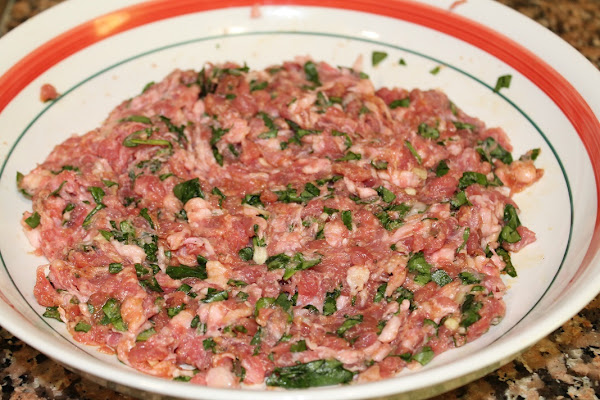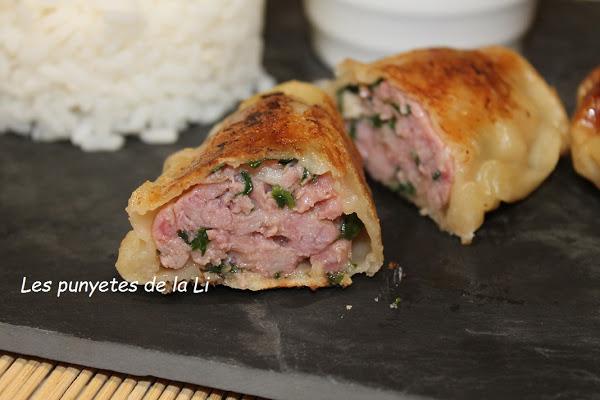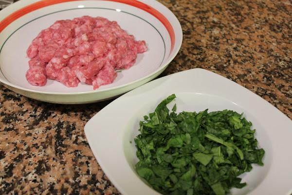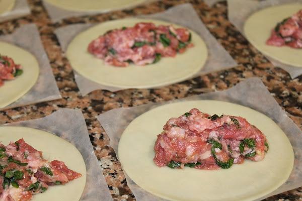 El relleno es de carne de butifarra de cerdo y espinacas. Las originales están hechas con col pero yo he utilizado espinacas porque la col .... ni olerla.
