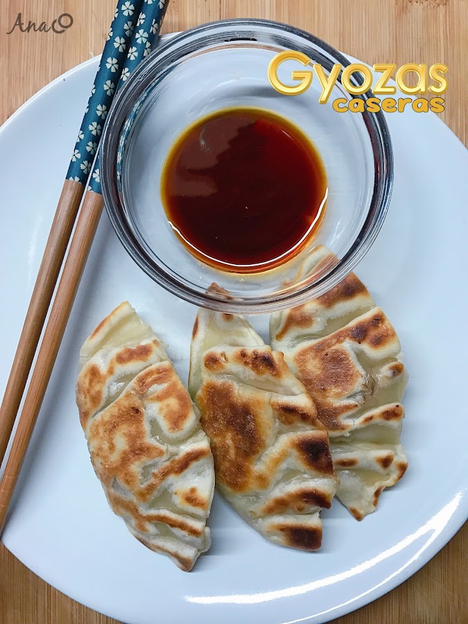 6. Solo nos quedará disfrutar de nuestras gyozas. Podéis acompañarlas de salsa de soja o hacer la salsa especifica de las gyozas, que lleva salsa de soja, vinagre de arroz, una pizca de azúcar y un poco de aceite de sésamo.