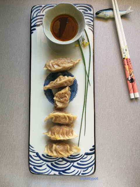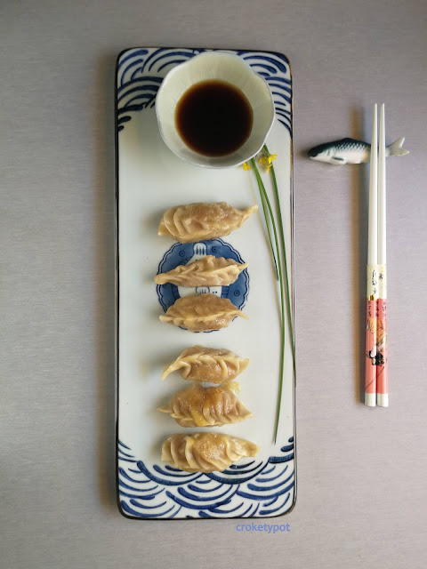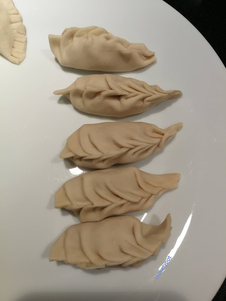 He elegido las gyozas, por dos razones, la primera, al verlas tan bien hechas y plegadas me encantaron y la segunda es que acabo de comprar la "pastamaker" y era una oportunidad buenísima para probarla y ver qué tal salía la masa. He seguido todas las indicaciones de Pato y os aseguro que su receta de masa en la máquina ha salido perfecta. Puedo decir que ha sido un reto doble, la receta y la máquina.