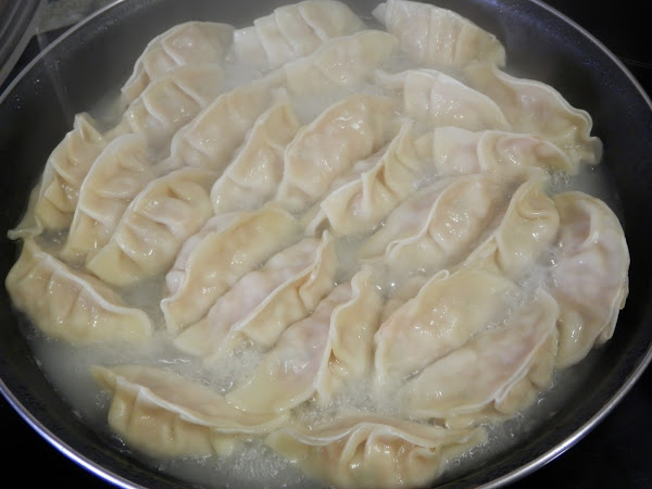 Añade agua hasta la mitad de las gyozas y deja cocer aproximadamente 15 minutos a fuego medio fuerte.