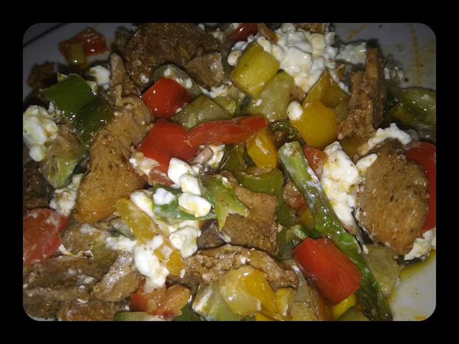 Salteamos toda la verdura y aderezamos con las especias gyros.