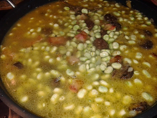 Salpimentar y dejar cocer a fuego lento hasta que las habas estén tiernas.