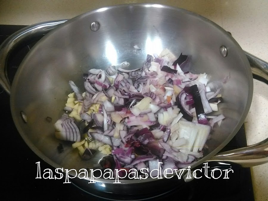 Saltarlo conjuntamente con la cebolla y el ajo pochado