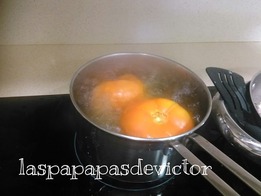 En un cazo poner a hervir los tomates haciendo un corte en cruz