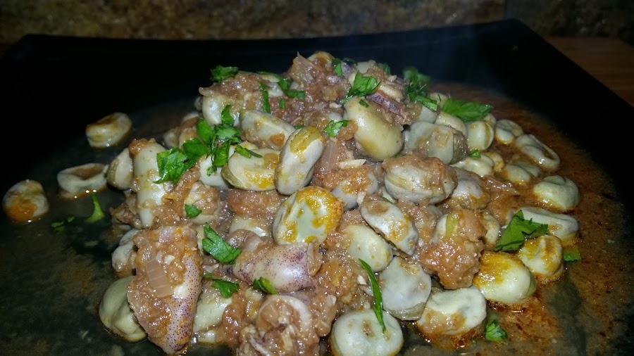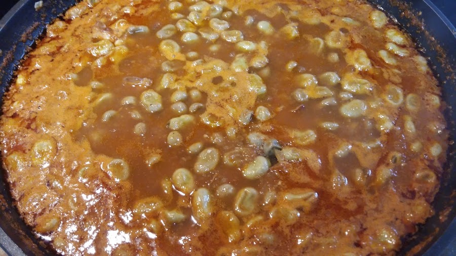 Y ya está, dejamos cocer durante unos 30 minutos a fuego lento para que reduzca el caldo y hasta que las habas estén tiernas.