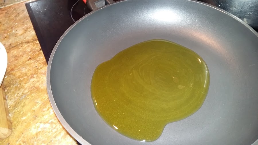 Ponemos en una cazuela o paellera un chorrito de aceite de oliva a calentar.
