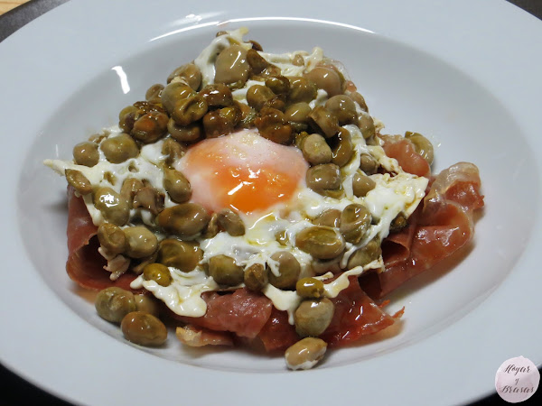 Disponer en el plato el jamón y encima las habas con el huevo, salpimentamos. Y a disfrutar.