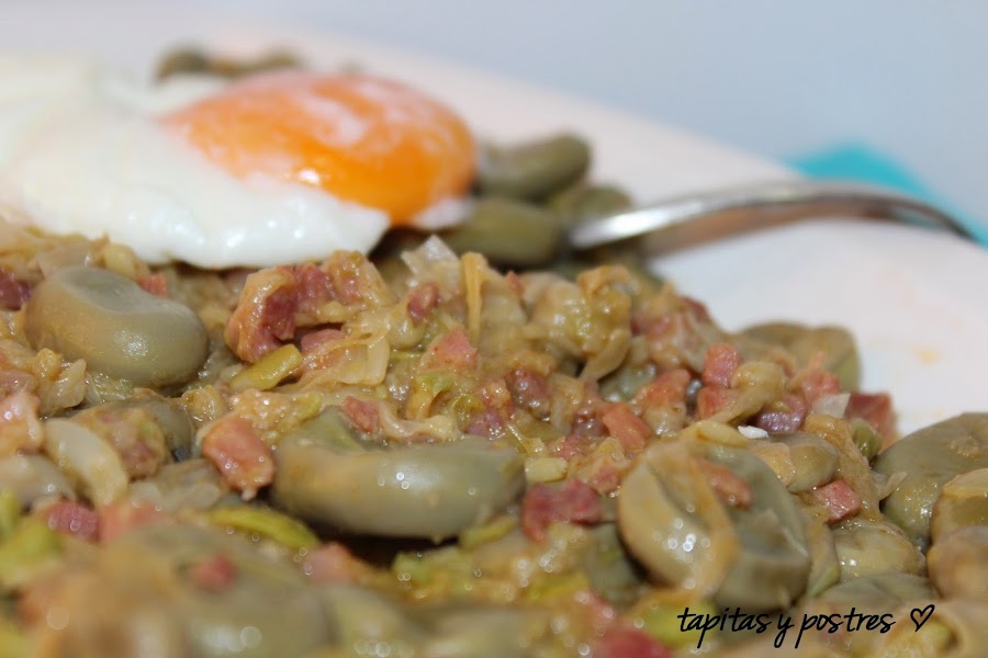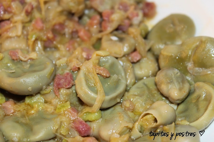 El viernes recogieron las habas. Son unas habas hermosas, sin ningún componente químico que las altere. A veces, si la cosecha es abundante, se reparte entre los compañeros. Esta vez, me dieron un puñadito de habas a mí, para que las probara y la receta más socorrida es Habas con jamón.