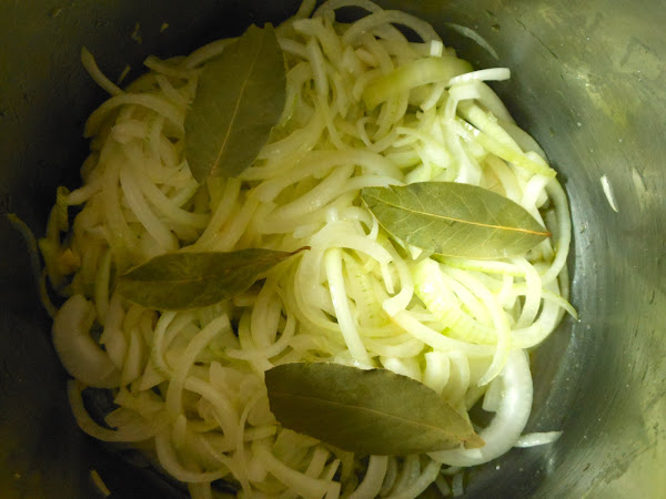 Tras esto agrega las cebollas picadas junto a una poquita de sal fina; remueve con tu cuchara de madera y tapa la cacerola con su tapadera; deja que las cebollas se ablanden durante 15 minutos o hasta que estén transparentes.