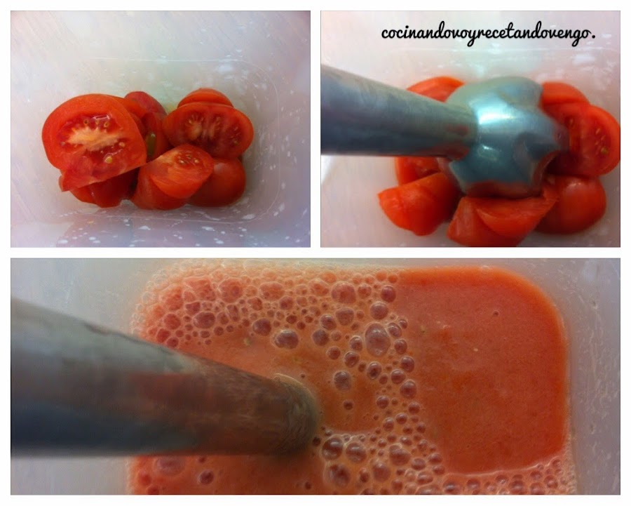 Lavamos unos tomates maduros, en el vaso de la batidora los trituramos y reservamos.