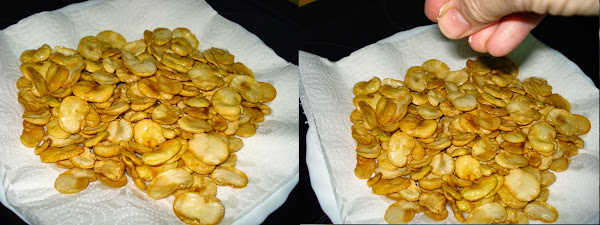 Sacamos las habas fritas, las colocamos en papel absorbente y las espolvoreamos de sal y ¡¡YA ESTÁN LISTAS PARA COMER!!