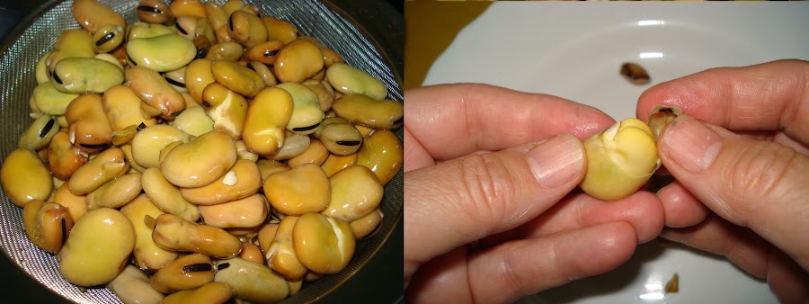 Este año las volvió a plantar y si que recogió una primera cosecha de habas pequeñas, con las que hicimos entre otros platos la tortilla de habas, y la segunda de habas grandes para este propósito.