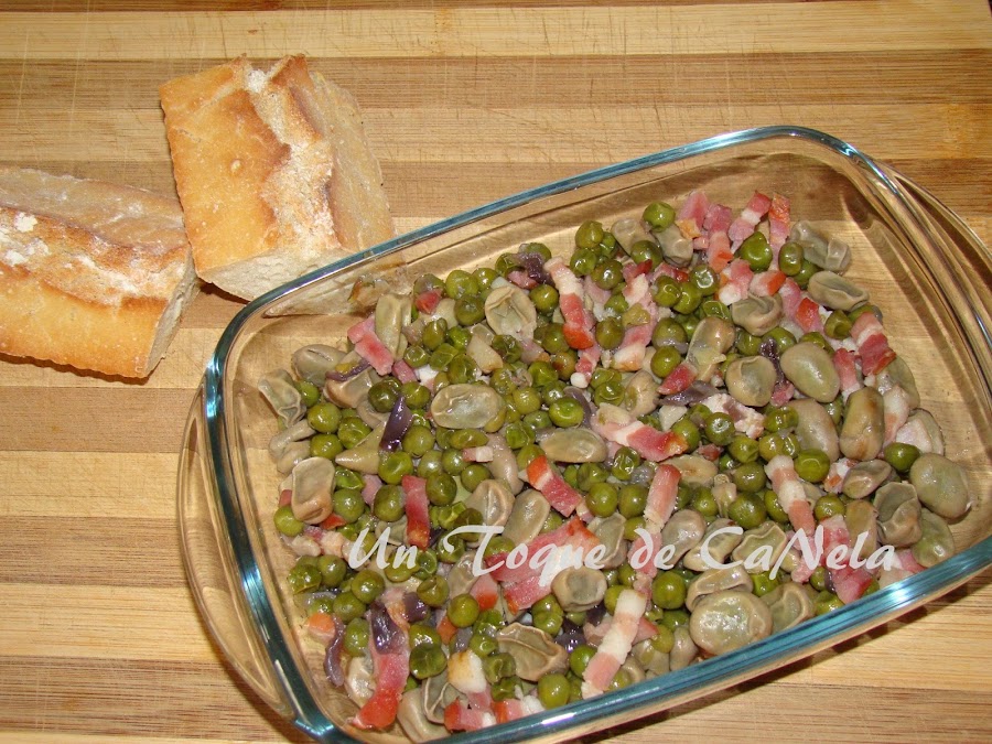 Descongelar, desde la noche anterior, los guisante y las habas en el frigo.